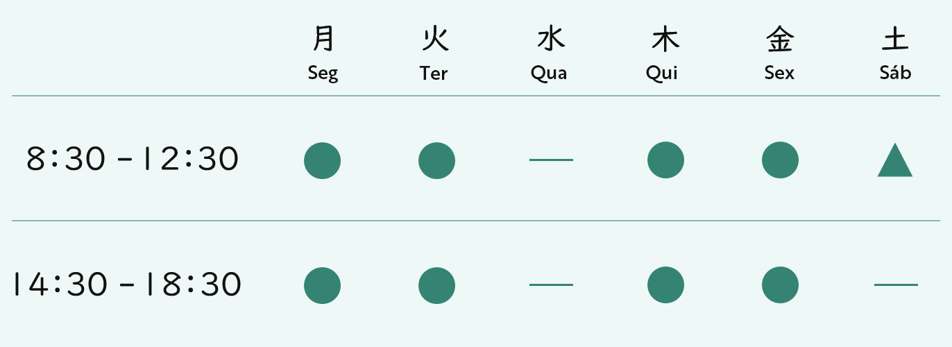 ▲… ⼟曜(Sábado) 8︓30 〜 13︓00